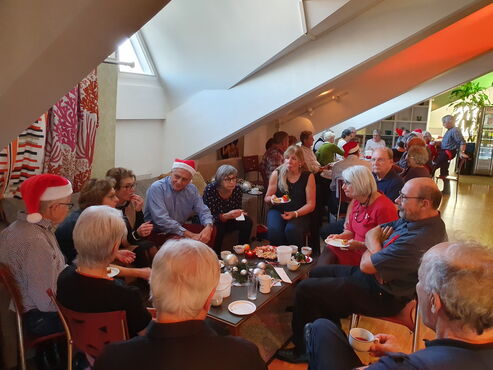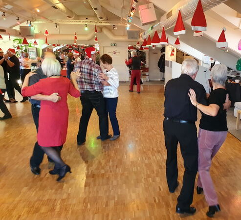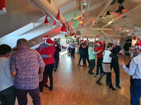 … mit weihnächtlicher Tanzmusik. Nüssli, Manderindli, Punsch und Glühwein lassen Adventsstimmung aufkommen – und natürlich nicht vergessen… die Tanzenden tragen das Ihre zur guten Stimmung bei: Sie erscheinen nicht nur mit stets guter Laune, sondern diesmal auch im Chlausen-Mützen-Look.