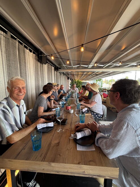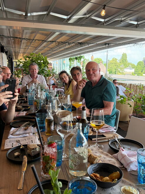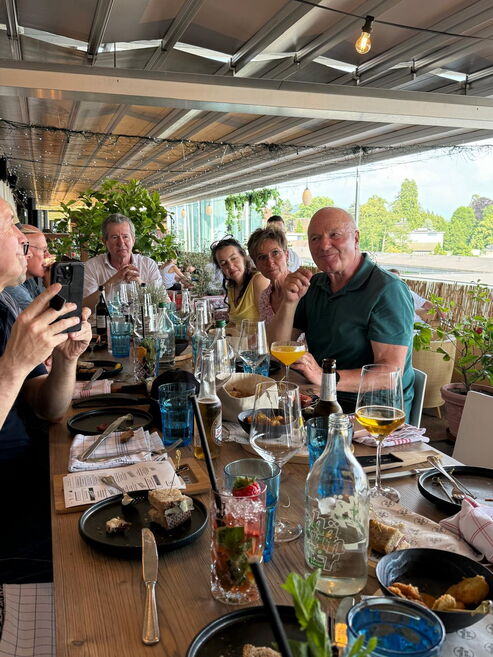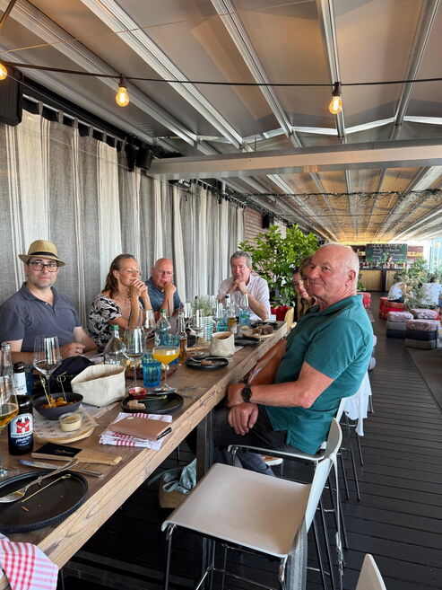 Oben angekommen, erwartete uns in der Rooftopbar des Kursaals eine gemütliche Tavolata mit wunderbarem Essen, guten Gesprächen und Blick über die Stadt. In dieser besonderen Atmosphäre verabschiedeten wir auch unsere liebe Mitarbeiterin Liliane Künzi, die sich aus gesundheitlichen Gründen vorerst vom Unterricht zurückzieht. Wir danken Liliane von Herzen für ihr langjähriges Engagement, ihre Herzlichkeit und all die schönen Tanzmomente, die sie uns geschenkt hat. ❤️
