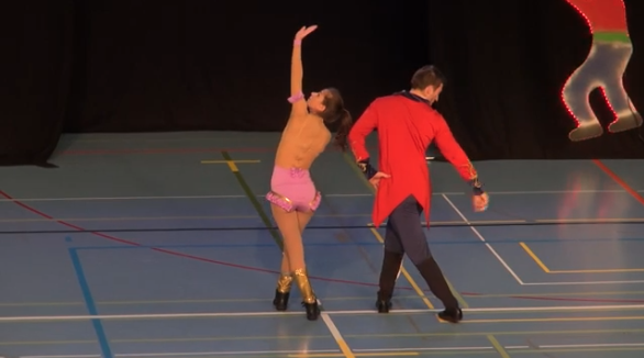 Ein schneller Tanz auf der Linie, mit Kicks und Kick-Ball-Change im Grundschritt. Akrobatische Figuren können, müssen aber nicht miteinbezogen werden.